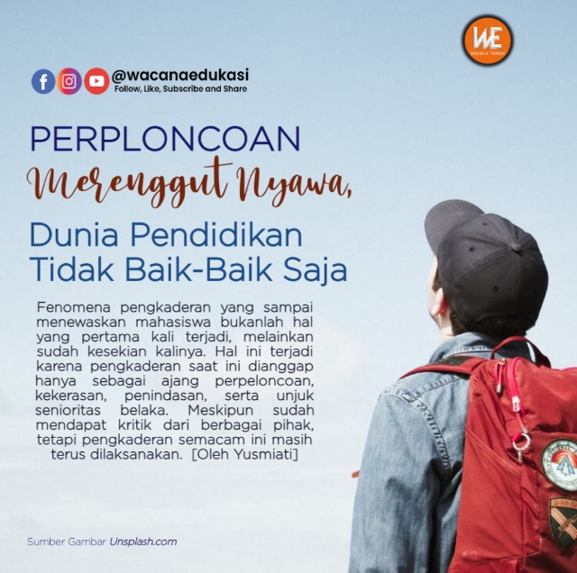 wacana-edukasi.com– Publik kembali digegerkan atas meninggalnya seorang mahasiswa Fakultas Kesehatan Masyarakat (FKM) Universitas Muslim Indonesia (UMI) berinisial ZA (20 tahun) pada saat mengikuti pengkaderan senat yang diselenggarakan di Desa Embun Pagi, Kecamatan Tinggimoncong, Kabupaten Gowa, Sulawesi Selatan pada Ahad, 24 Juli 2022. Dalam penutupan pengkaderan yang diikuti oleh 24 peserta tersebut, terdapat berbagai rangkaian kegiatan, di antaranya jalan jongkok, merayap di kali, serta berendam di kolam. Dugaan sementara penyebab meninggalnya ZA adalah akibat korban mengalami kelelahan saat mengikuti pengkaderan di tengah cuaca ekstrem. (Kompas TV, 25/07/2022)