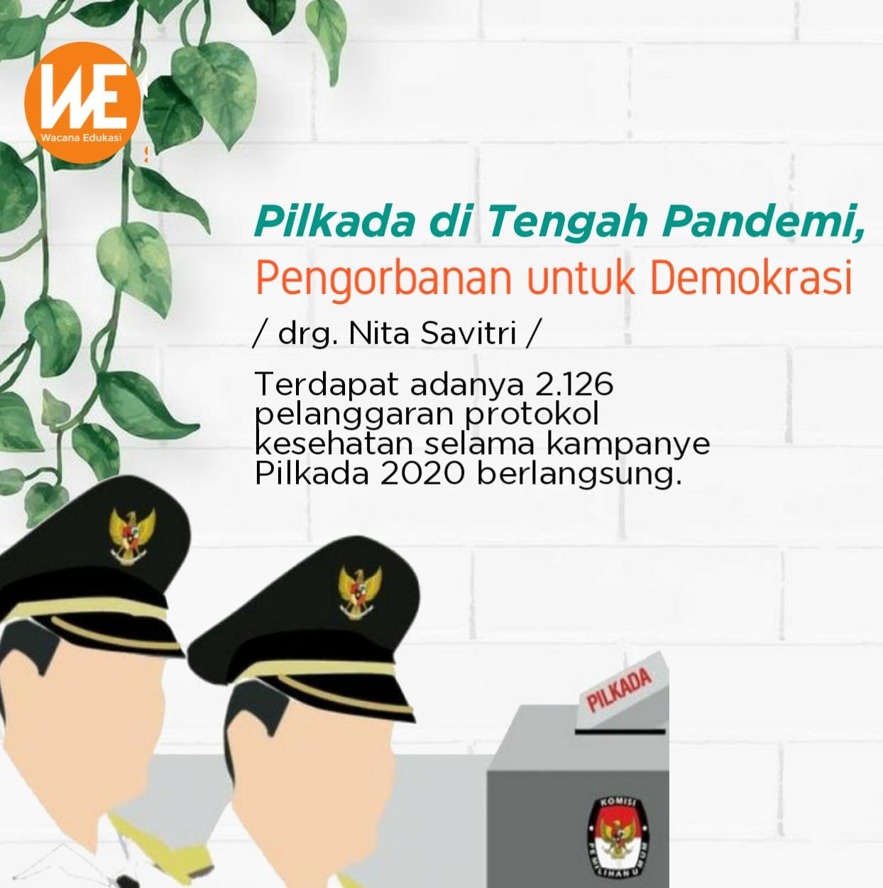 Walau pandemi covid-19 masih melonjak korbannya, Pemerintah tetap menggelar hajatan per-lima tahunan ini. Tercatat 70 orang calon Kepala Daerah terinfeksi covid-19, 4 di antaranya meninggal dunia dan 110 orang anggota KPU (Komisi Pemilihan Umum) juga terpapar covid-19. Hal tersebut mengundang keprihatinan dari mantan Ketua Mahkamah Konstitusi (MK) Hamdan Zoelva. Dalam cuitannya beliau menyatakan adanya 100 penyelenggara termasuk Ketua KPU RI telah terinfeksi covid-19. Betapa besar pengorbanan untuk demokrasi.