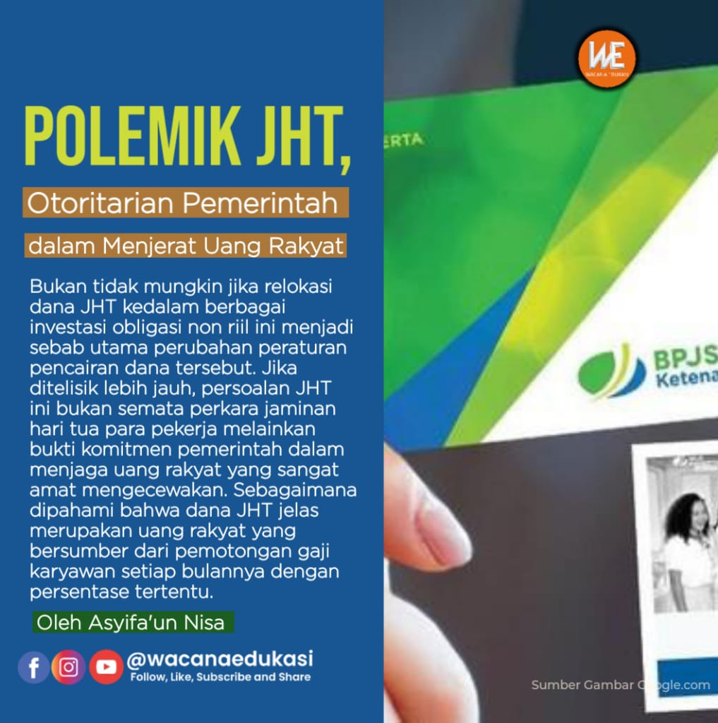 Bukan tidak mungkin jika realokasi dana JHT ke dalam berbagai investasi obligasi nonriil ini menjadi sebab utama perubahan peraturan pencairan dana tersebut. Jika ditelisik lebih jauh, persoalan JHT ini bukan semata perkara jaminan hari tua para pekerja melainkan bukti komitmen pemerintah dalam menjaga uang rakyat yang sangat amat mengecewakan. Sebagaimana dipahami bahwa dana JHT jelas merupakan uang rakyat yang bersumber dari pemotongan gaji karyawan setiap bulannya dengan persentase tertentu. Hal ini menjadi bukti otoritarian rezim kapitalis, tidak hanya melahirkan kebijakan tangan besi yang menyengsarakan rakyat tapi secara jelas telah menggunakan tugasnya sebagai pembuat kebijakan untuk menangguhkan uang rakyat dengan dalih jaminan. Mirisnya pemerintah hari ini tidak bertindak sebagai pihak yang berkewajiban menghadirkan kesejahteraan rakyat, melainkan hanya bertindak seperti perusahaan asuransi yang berbelit-belit dengan dana yang tidak liquid.