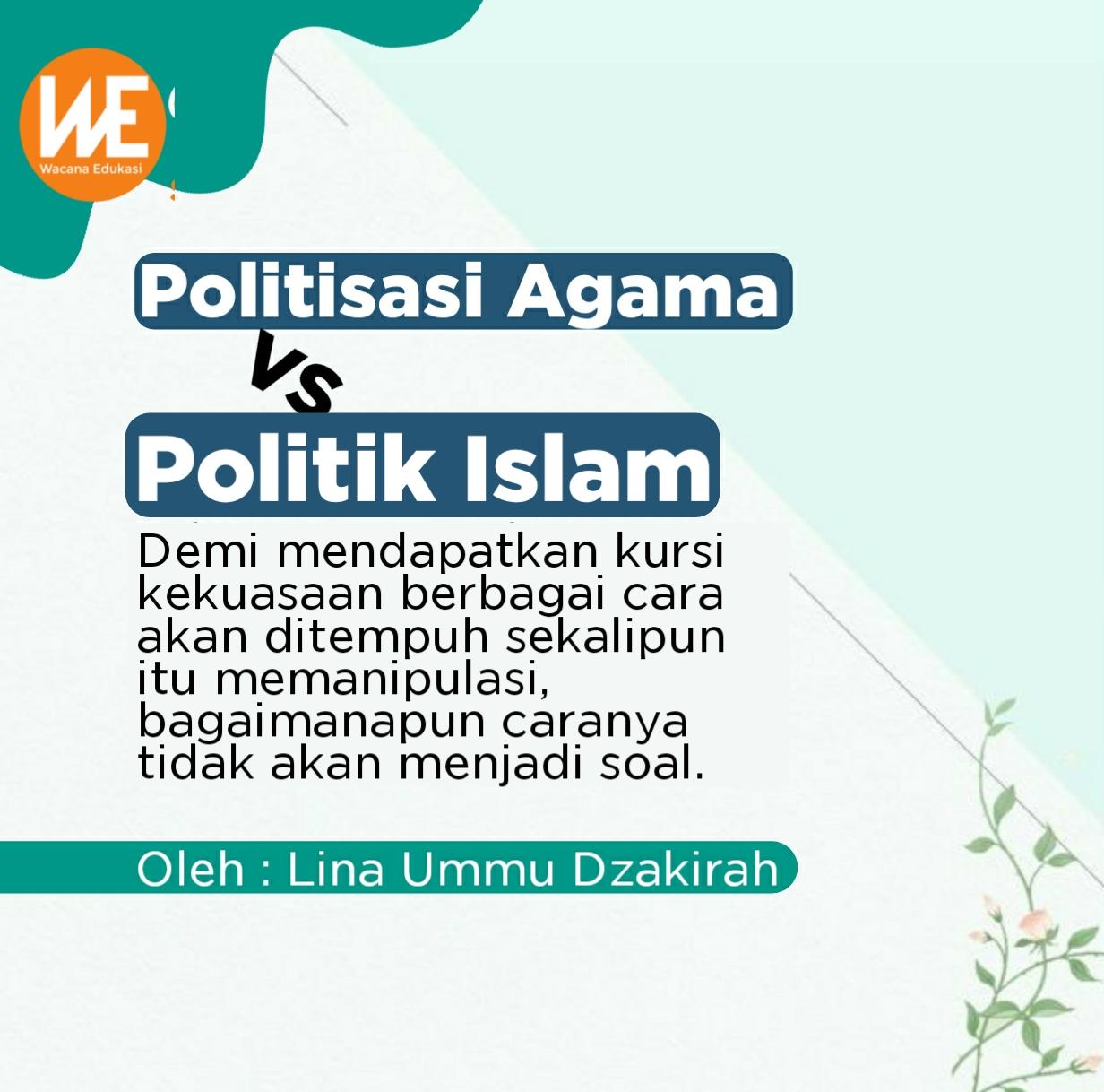 Politisasi agama di sistem demokrasi tidak bisa dihindari. Sebab proses pemilihan pemimpin bentuknya adalah kontestasi politik mencari suara terbanyak untuk dapatkan kursi kekuasaan. Demi mendapatkan kursi kekuasaan berbagai cara akan ditempuh sekalipun itu memanipulasi, apapun caranya tidak akan menjadi soal. Apalagi di Indonesia yang penduduknya mayoritas muslim. Walaupun cara seperti ini rakyat sudah merasa bosan ketika melihat agama dihubung-hubungkan dengan politik. Simbol agama dijadikan sebagai alat yang paling ampuh untuk meraih simpati rakyat selain money politics.