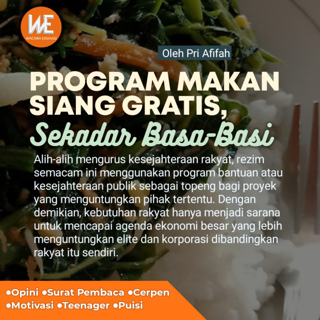 Alih-alih mengurus kesejahteraan rakyat, rezim semacam ini menggunakan program bantuan atau kesejahteraan publik sebagai topeng bagi proyek yang menguntungkan pihak tertentu. Dengan demikian, kebutuhan rakyat hanya menjadi sarana untuk mencapai agenda ekonomi besar yang lebih menguntungkan elite dan korporasi dibandingkan rakyat itu sendiri.