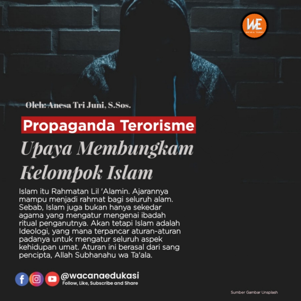 Jadi kita sebagai Muslim jangan sampai terpengaruh atas propaganda yang dilakukan oleh mereka yang berlindung di balik “proyek” terorisme ini. Apalagi kita melihat secara sinis terhadap saudara-saudara kita yang memperjuangkan syariah dan Khilafah. Jika kita melakukan hal tersebut, sama saja kita termakan propaganda mereka. Inilah yang mereka harapkan. Agar sesama Muslim saling terpecah belah.