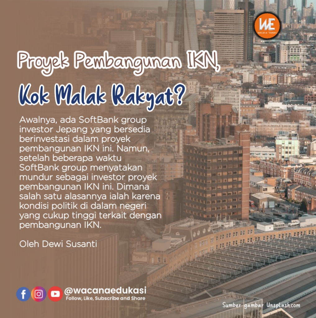 Jelas, rencana tersebut sangat menyulitkan rakyat. Seperti peribahasa “Sudah jatuh tertimpa tangga pula” itu gambaran bahwa di tengah kesenjangan ekonomi, pemerintah dengan mudahnya meminta iuran dana kepada masyarakat untuk proyek pembangunan IKN. Masyarakat dengan pungutan pajak saja, itu sudah sangat memberatkan. Apalagi, ditambah beban berat harus dimintai iuran dana pembangunan IKN Nusantara.
