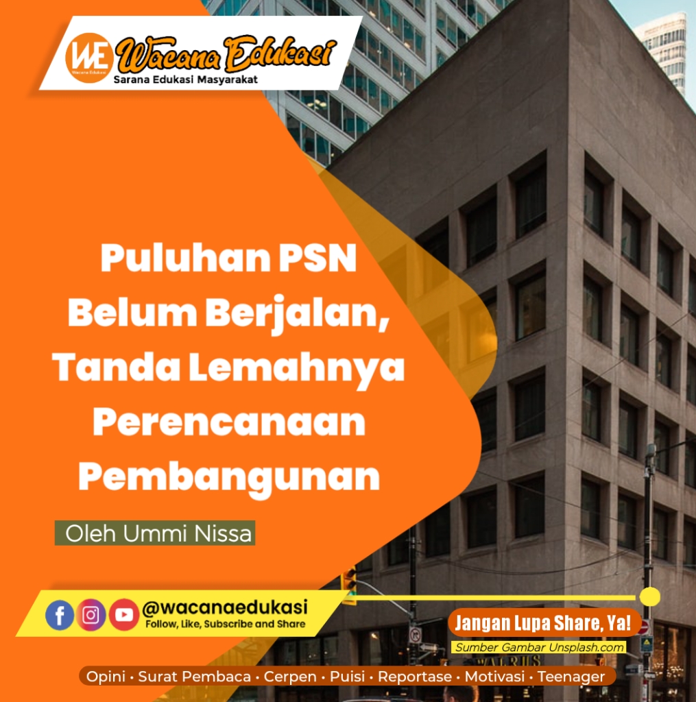 wacana-edukasi.com, OPINI– Selama era kepemimpinan Presiden Jokowi, publik menyaksikan pembangunan infrastruktur demikian jor-joran. Namun kini di akhir-akhir tahun kepemimpinannya, BPK (Badan Pengawas Keuangan) melaporkan ada 58 Proyek Strategis Negara (PSN) yang belum dimulai pembangunannya. Padahal ditargetkan bisa rampung pada 2024. Di antara proyek tersebut ada MRT (Mass Rapid Transit), pembangunan jalan tol, dan pelabuhan. Dalam laporannya, BPK menyebut nilai investasi 58 PSN infrastruktur yang belum digarap itu mencapai Rp420 triliun. Selain itu, proyek-proyek tersebut disinyalir tidak memberikan manfaat yang optimal kepada masyarakat.