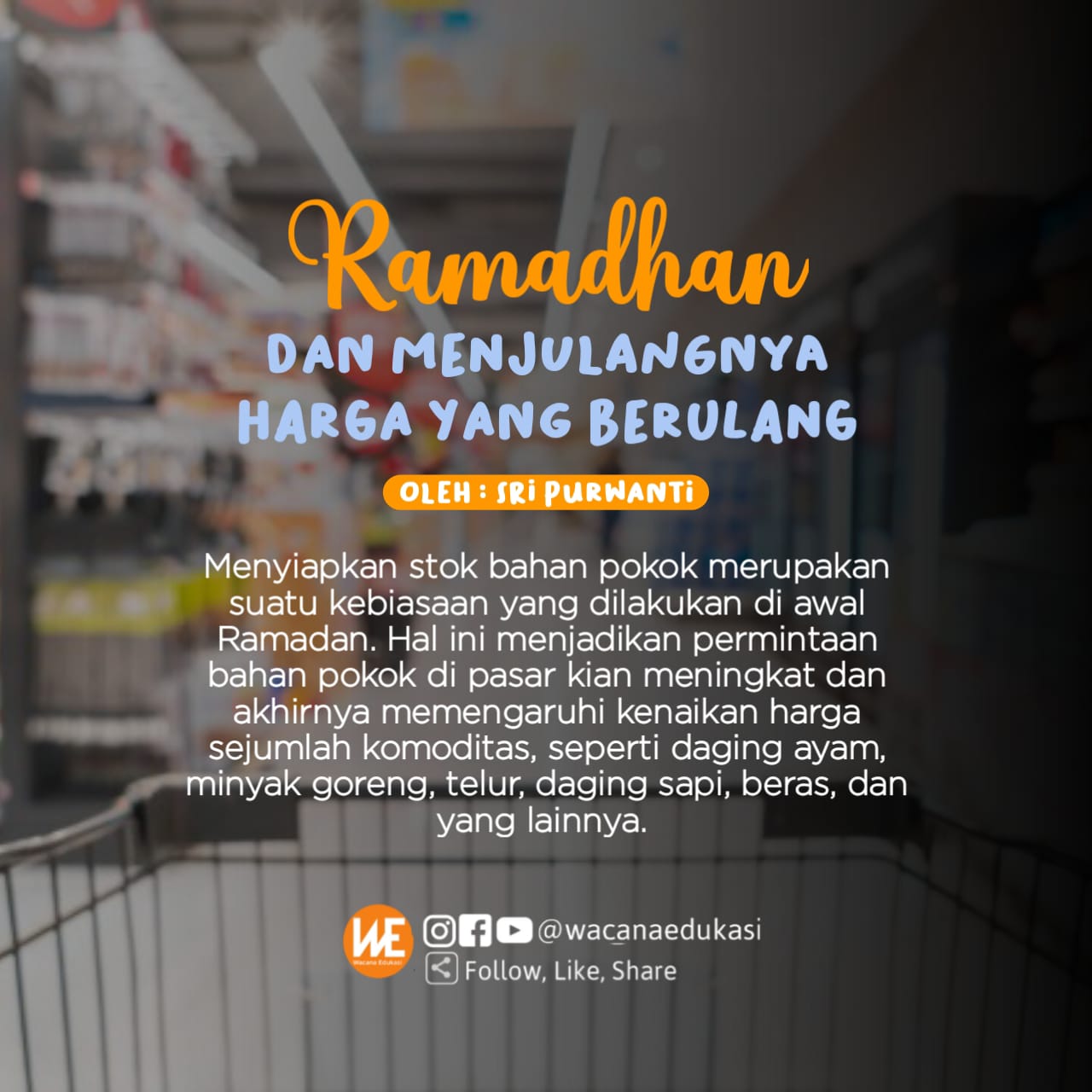 Wacanaedukasi.com — Menyiapkan stok bahan pokok merupakan suatu kebiasaan yang dilakukan di awal Ramadan. Hal ini menjadikan permintaan bahan pokok di pasar kian meningkat dan akhirnya memengaruhi kenaikan harga sejumlah komoditas, seperti daging ayam, minyak goreng, telur, daging sapi, beras, dan yang lainnya.