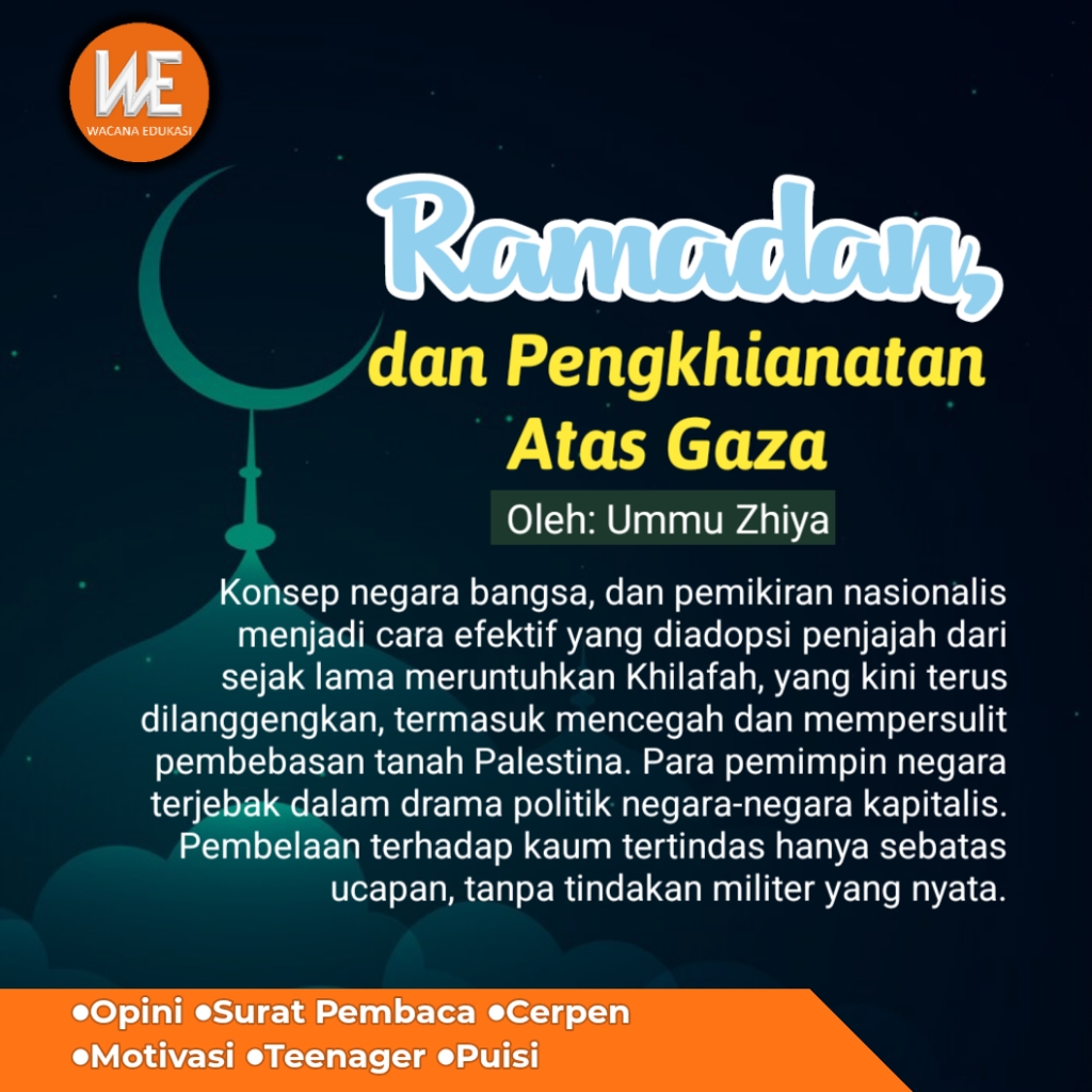 Konsep negara bangsa, dan pemikiran nasionalis menjadi cara efektif yang diadopsi penjajah dari sejak lama meruntuhkan Khilafah, yang kini terus di langgengkan, termasuk mencegah dan mempersulit pembebasan tanah Palestina. Para pemimpin negara terjebak dalam drama politik negara-negara kapitalis. Pembelaan terhadap kaum tertindas hanya sebatas ucapan, tanpa tindakan militer yang nyata.