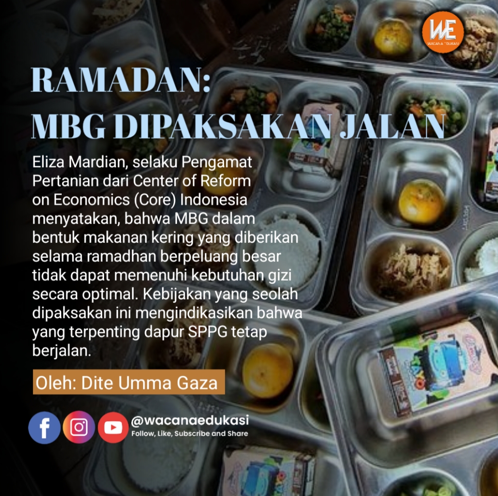 wacana-edukasi.com, OPINI–Diberitakan oleh www.bgn.go.id (26/01/2026), Program Makan Bergizi Gratis (MBG) selama bulan ramadhan ini akan didistribusikan seperti hari-hari biasa. Dadan Hindayana selaku Kepala Badan Gizi Nasional (BGN) menegaskan bahwa MBG akan tetap diberikan, skema pendistribusiannya akan disesuaikan sesuai karakteristik penerima manfaat.