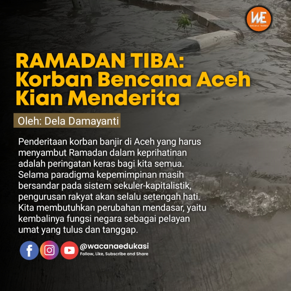 Penderitaan korban banjir di Aceh yang harus menyambut Ramadan dalam keprihatinan adalah peringatan keras bagi kita semua. Selama paradigma kepemimpinan masih bersandar pada sistem sekuler-kapitalistik, pengurusan rakyat akan selalu setengah hati. Kita membutuhkan perubahan mendasar, yaitu kembalinya fungsi negara sebagai pelayan umat yang tulus dan tanggap.