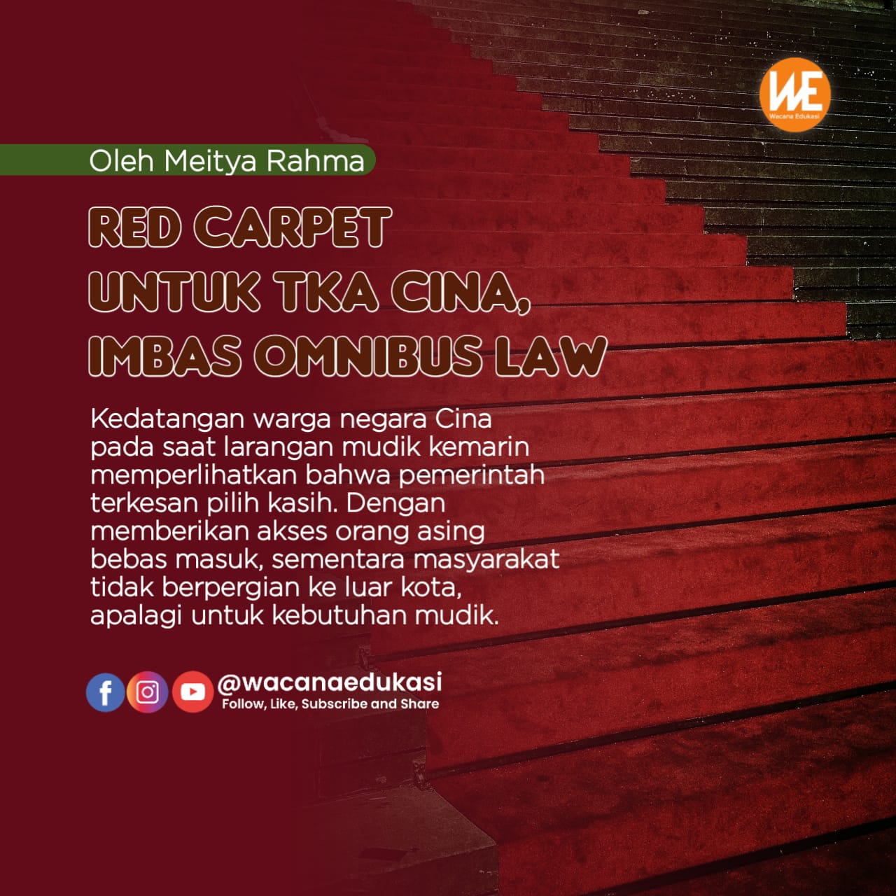 Maka wajar jika masyarakat mempertanyakan sikap para menteri dan Satuan Tugas (Satgas) Covid-19 yang selama ini keras menyatakan larangan mudik tetapi bersikap sebaliknya terhadap kedatangan para TKA Cina. Kedatangan pada TKA Cina itu justru digelar “karpet merah”.
