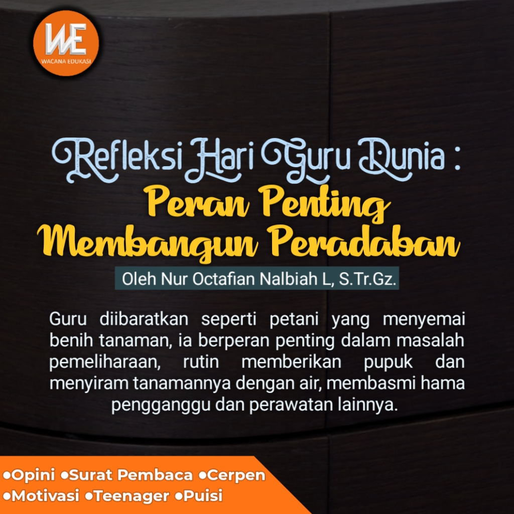 Begitu pula peran guru dalam membersamai anak didiknya. Begitu krusialnya peran guru dalam membentuk masa depan generasi harapan bangsa sudah seharusnya mereka diperhatikan kesejahteraan hidupnya.