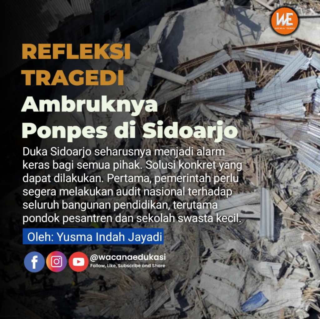 Tragedi Ponpes Sidoarjo bukan hanya kisah pilu tentang ambruknya bangunan, melainkan refleksi atas ambruknya tanggung jawab negara terhadap pendidikan. Bila kita tak belajar dari puing ini, maka dinding-dinding lain akan kembali runtuh, bukan karena rapuhnya semen, melainkan karena lemahnya komitmen.