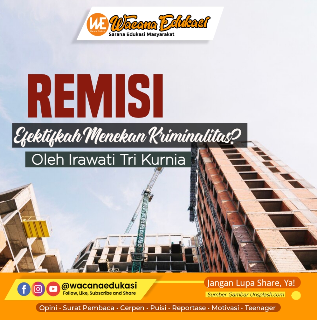 wacana-edukasi.com, SURAT PEMBACA-– Sudah menjadi tradisi jika saat momen tertentu, seperti pada hari Raya Idul Fitri, selalu ada remisi (pemotongan masa tahanan) bagi para narapidana (rutannegara.kemenkumham.go.id) (1). Pada momen lebaran ini Pemerintah juga banyak memberikan remisi (tirto.id, 100 April 2024) (2). Apakah ini efektif menekan angka kriminalitas?