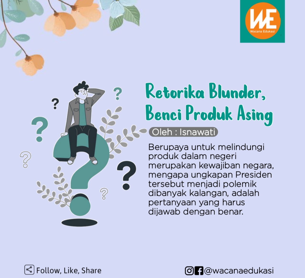 Berupaya untuk melindungi produk dalam negeri merupakan kewajiban negara, mengapa ungkapan Presiden tersebut menjadi polemik dibanyak kalangan, adalah pertanyaan yang harus dijawab dengan benar. Seringkali kebijakan dan pernyataan penguasa membingungkan rakyat sebab sekedar beretorika pun ujung-ujungnya blunder tidak masuk akal, apalagi menuntaskan masalah. Seperti seruan membenci produk asing tetapi tidak diiringi upaya perubahan menuju kemandirian secara total. Pintu masuknya produk asing dan investasi di buka selebar-lebarnya atas nama demi perbaikan ekonomi rakyat. Retorika itu pun menimbulkan pertanyaan lagi, untuk perbaikan ekonomi rakyat yang mana? sedangkan seruan untuk tidak mempersulit masuknya investor asing dilakukan secara masif pada jajaran pejabat.
