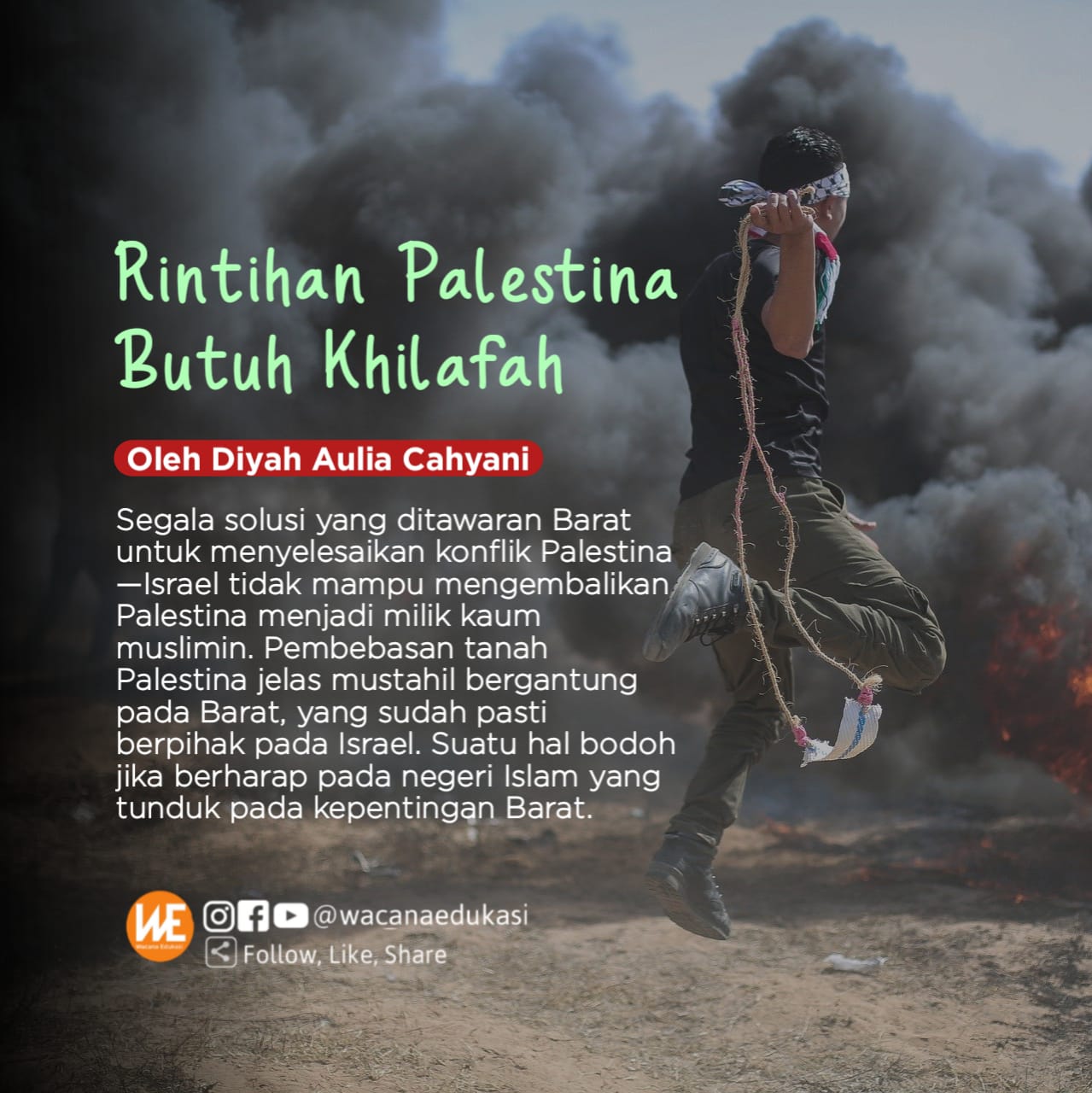 Segala solusi yang ditawaran Barat untuk menyelesaikan konflik Palestina—Israel tidak mampu mengembalikan Palestina menjadi milik kaum muslimin. Pembebasan tanah Palestina jelas mustahil bergantung pada Barat, yang sudah pasti berpihak pada Israel. Suatu hal bodoh jika berharap pada negeri Islam yang tunduk pada kepentingan Barat.