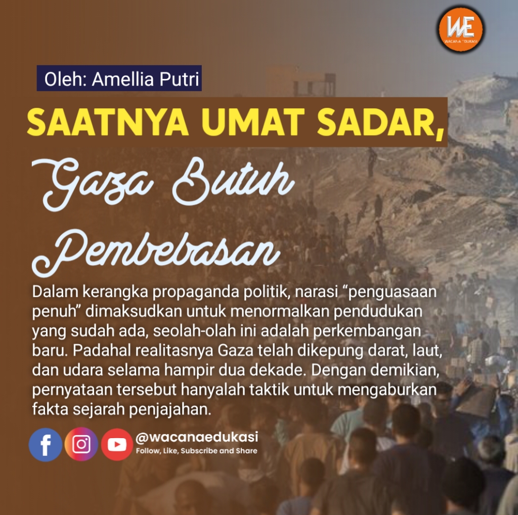 Dalam kerangka propaganda politik, narasi “penguasaan penuh” dimaksudkan untuk menormalkan pendudukan yang sudah ada, seolah-olah ini adalah perkembangan baru. Padahal realitasnya Gaza telah dikepung darat, laut, dan udara selama hampir dua dekade. Dengan demikian, pernyataan tersebut hanyalah taktik untuk mengaburkan fakta sejarah penjajahan.