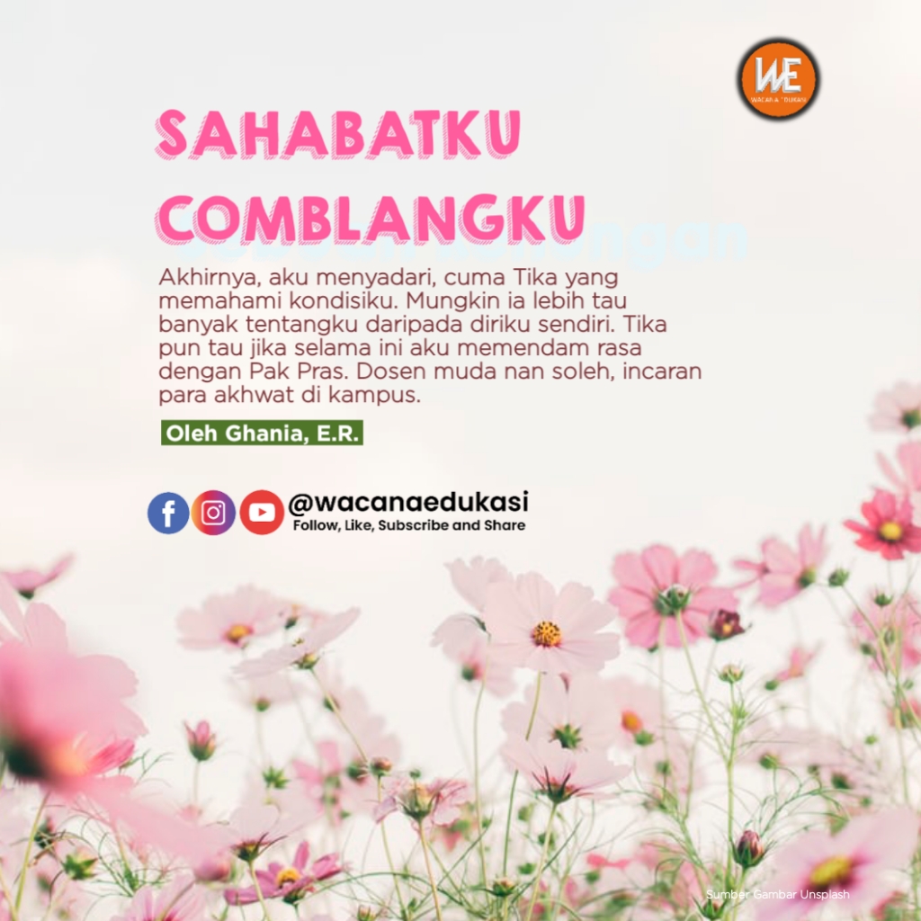 Akhirnya, aku menyadari, cuma Tika yang memahami kondisiku. Mungkin ia lebih tau banyak tentangku daripada diriku sendiri. Tika pun tau jika selama ini aku memendam rasa dengan Pak Pras. Dosen muda nan soleh, incaran para akhwat di kampus. Meskipun aku berusaha memendam rasa itu. Memang sudah saatnya pula aku menikah. Setidaknya mengurangi beban Pakdhe Fatah.