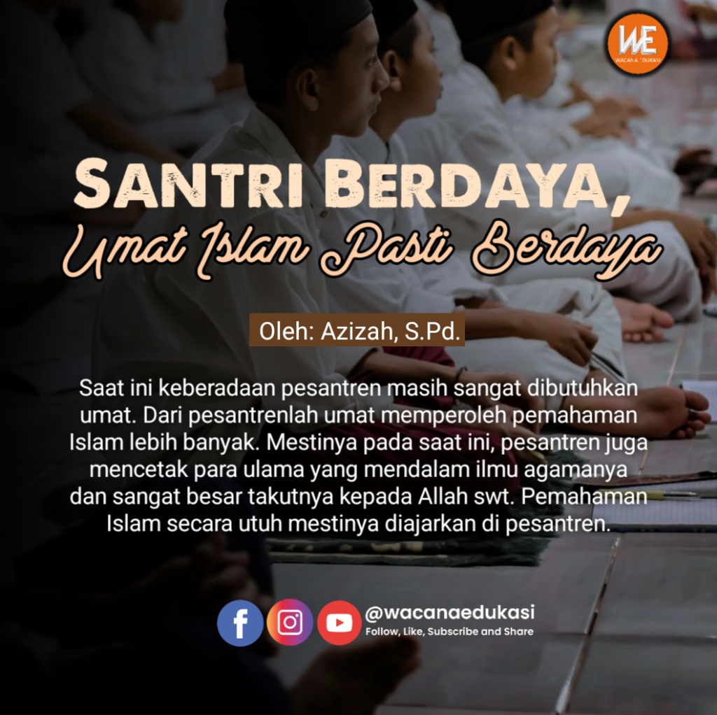 Negara kapitalis barat berhasil merusak kekuatan dan semangat juang umat Islam lewat perang pemikiran dan budaya. Paham sekularisme, demokrasi, nasionalisme, dan liberalisme dan masih banyak lagi, ditancapkan di negeri kita. Jadilah ajaran Islam kehilangan esensinya sebagai sebuah ideologi yang punya kekuatan melawan, mempesatukan, sekaligus menyelesaikan seluruh masalah kehidupan. Dengan berbagai pemahaman itu akhirnya penjajah berhasil memecah belah umat dalam batas negara bangsa. Akibatnya, negeri-negeri muslim berada pada posisi sebagai negara pengekor, termasuk Indonesia. Menjadi negara yang miskin meskipun SDM dan SDA melimpah. Menjadi negara yang tidak mandiri secara politis. Dalam kontek saat inilah para santri dan ulama sebagai mercusuar umat, diharapkan memahami kondisi negeri ini. Dengan harapan, peran mereka sebagai pelopor perubahan akan terwujud.