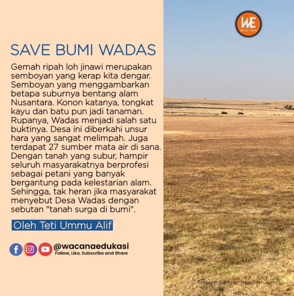 Namun sayang, potensi luar biasa bumi surga tersebut terancam hilang ditelan mega proyek ambisius yang menghabiskan biaya 2,06 triliun rupiah. Proyek bendungan yang digadang-gadang akan menjadi konstruksi bendungan tertinggi di Indonesia dan ke-2 di Asia Tenggara. Tak tanggung-tanggung mega proyek ini membutuhkan lahan seluas 145 hektar. Mirisnya, menurut SK Gubernur Jawa Tengah Nomor 509/41/2018, Wadas lah yang ideal untuk dijadikan “tumbal”.