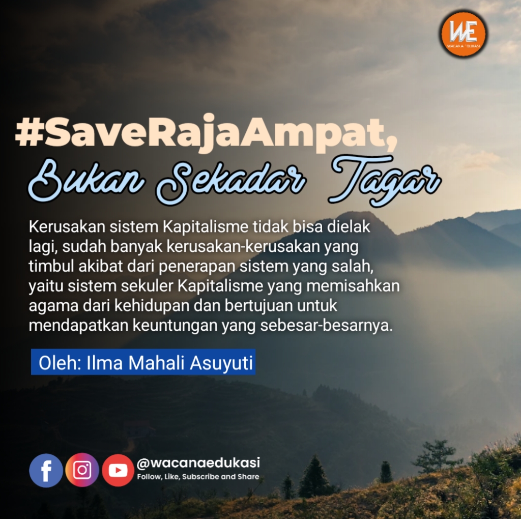 Seorang pemimpin juga berperan sebagai pengurus yang akan mengelola SDA secara aman dan menjaga kelestarian lingkungan dengan tidak memberikannya kepada asing. Negara juga bertanggung jawab atas kebutuhan hidup banyak orang, yaitu rakyat yang ada di bawah kekuasaannya. Jadi, ini bukan hanya tentang Raja Ampat, tetapi tentang bagaimana cara para penguasa memperlakukan rakyatnya dan alam yang ada. [WE/IK]