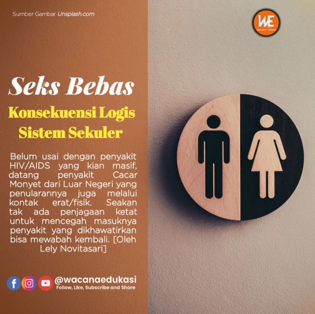 Belum usai dengan penyakit HIV/AIDS yang kian masif, datang penyakit Cacar Monyet dari Luar Negeri yang penularannya juga melalui kontak erat/fisik. Seakan tak ada penjagaan ketat untuk mencegah masuknya penyakit yang dikhawatirkan bisa mewabah kembali. Cacar monyet nama penyakit yang dapat menular melalui kontak langsung kini memasuki Indonesia sejak Sabtu (20/8/2022). Kementerian Kesehatan RI melaporkan pasien cacar monyet pertama pada seorang WNI yakni pria berusia berusia 27 tahun yang sempat melakukan perjalanan ke luar negeri. Kemenkes RI menegaskan, penyakit ini menular lewat kontak dekat. Health.detik.com