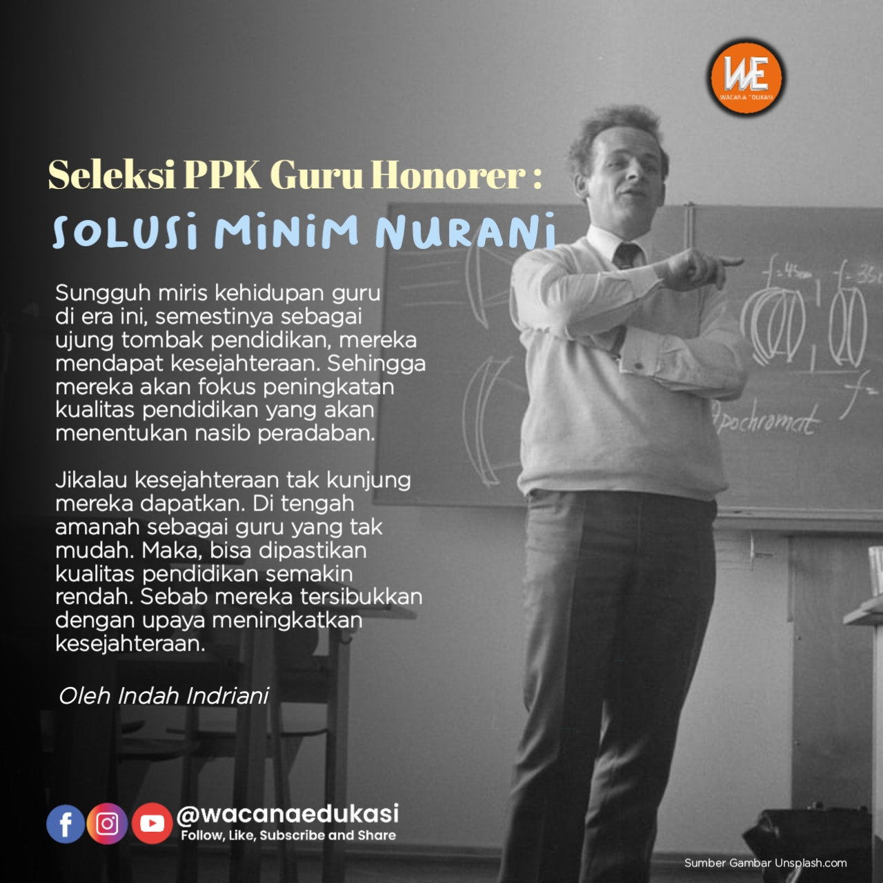 Sungguh mulia posisi sebagai seorang guru, sudah seharusnya diberi penghargaan tinggi, tapi tanpa harus mengikuti seleksi. PPPK hanyalah solusi setengah hati yang minim nurani. Memang hanya sistem Islam, yang tuntas menyolusi.