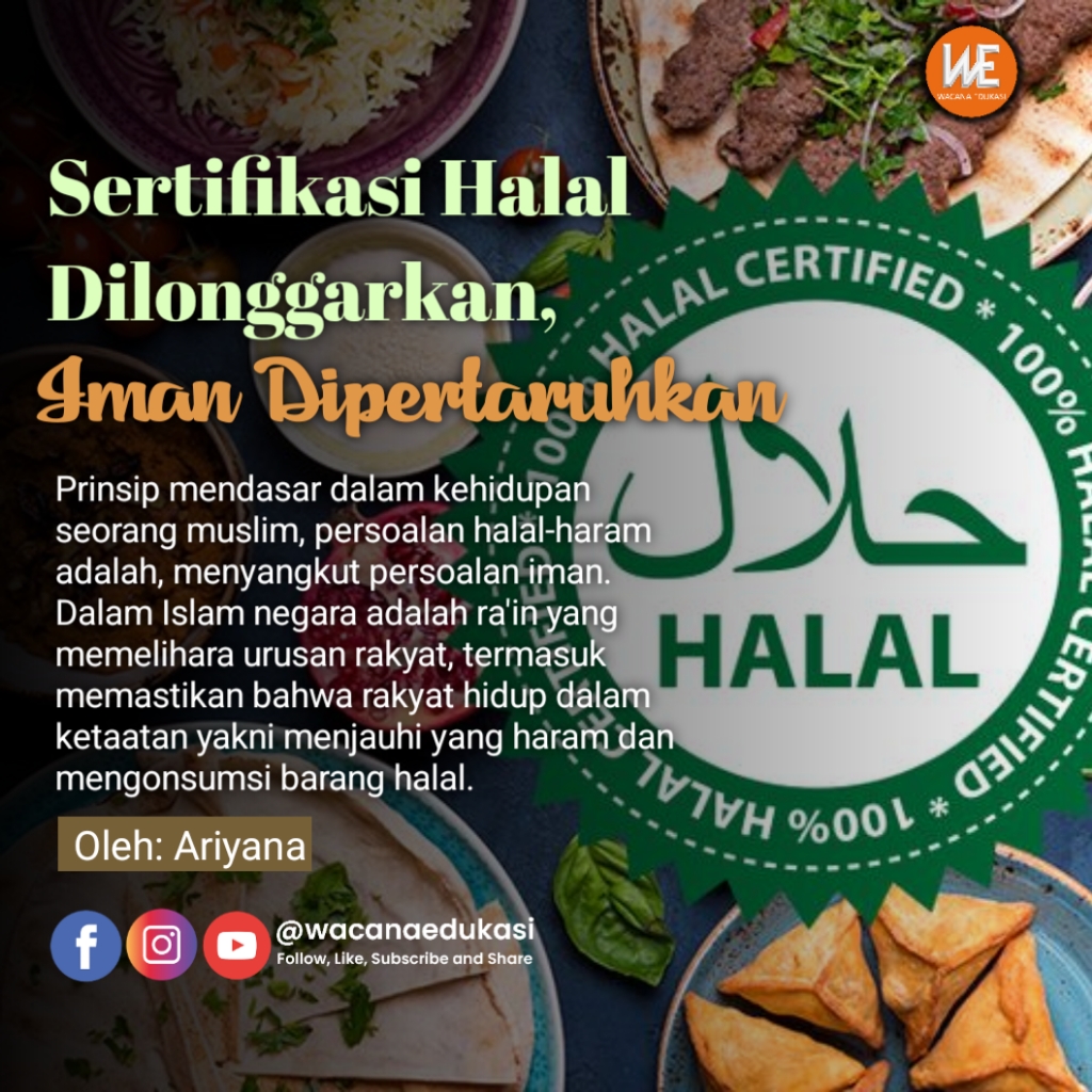 wacana-edukasi.com, OPINI–Mayoritas muslim seolah diabaikan oleh kebijakan yang dibuat pemerintah mengenai kehalalan sebuah produk. Mencari keuntungan namun mengabaikan akidah umat Islam. Kesepakatan Indonesia dan Amerika sudah melukai umat muslim, terlebih lagi produk negeri Paman Sam tersebut banyak menggunakan produk non-halal. Kerja sama Indonesia dan Ameriak Serikat untuk kepentingan pemilik modal yang berkuasa. Kesepakatan dagang tersebut hanya menguntungkan sebagian pihak. Keimanan dipertaruhkan dalam kerja sama demi keuntungan penguasa.