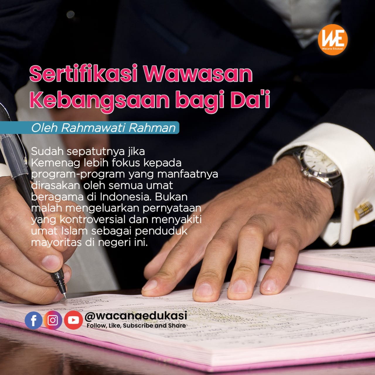 Wacana-edukasi.com — Menteri Agama Yaqut Cholil Qoumas dalam rapat kerja komisi VIII DPR menyebut akan melakukan sertifikasi wawasan kebangsaan bagi para dai dan penceramah.