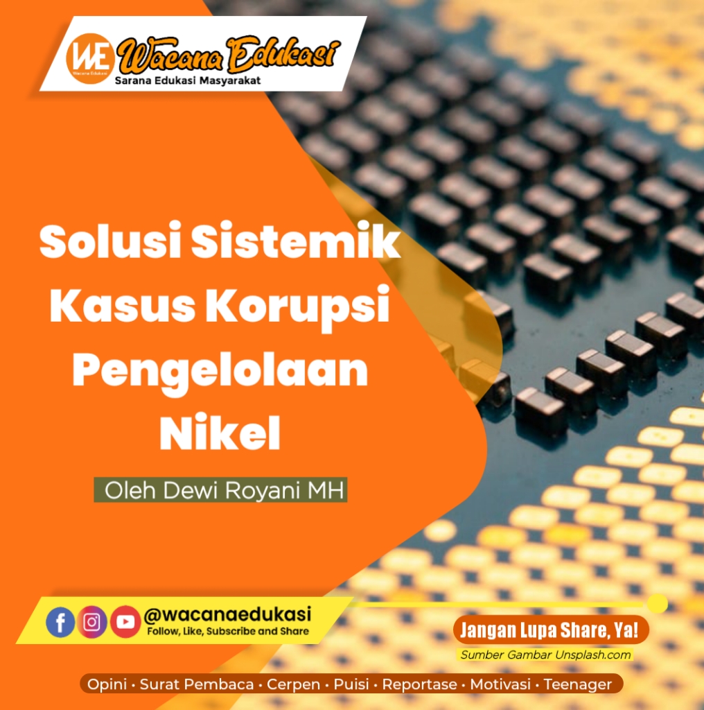wacana-edukasi.com, SURAT PEMBACA– Tindak pidana korupsi masih menjadi permasalahan pelik di negeri ini. Indonesia merupakan negara dengan Indeks Persepsi Korupsi (IPK) yang cukup tinggi. Kasus korupsi terbaru yang menghentak publik yaitu kasus dugaan korupsi di pertambangan nikel PT Aneka Tambang Tbk (ANTM) di Wilayah Izin Usaha Pertambangan (WIUP) Blok Mandiodo, Konawe Utara, Sulawesi Tenggara. Korupsi ekspor ilegal 5 juta ton bijih nikel ke China dengan kerugian negara diperkirakan sekitar 5,7 triliun rupiah. Meski sudah ada yang ditetapkan sebagai tersangka, dugaan korupsi tersebut masih dalam penyelidikan.