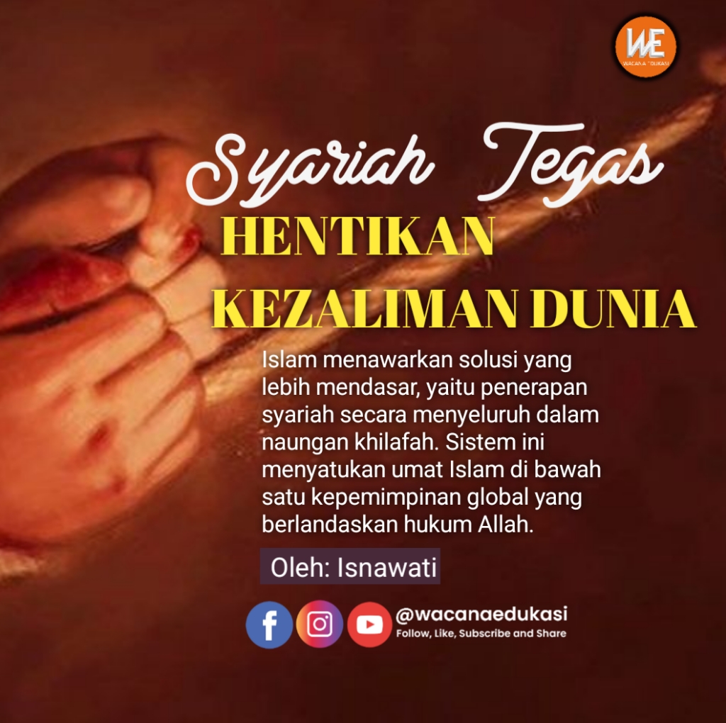 Solusi hakiki bukan sekadar bantuan kemanusiaan yang bersifat sementara, melainkan perubahan sistem secara menyeluruh. Syariah dalam naungan khilafah menawarkan jalan yang tegas dan menyeluruh untuk menghentikan kezaliman serta menghadirkan keadilan yang nyata bagi seluruh umat manusia.