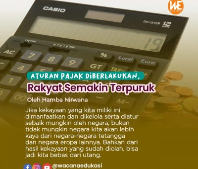 Oleh Hamba Nirwana (Aktivis Muslimah) Pajak bukanlah salah satu cara untuk meningkatkan pendapatan negara. Sebab negara kita Indonesia adalah negara