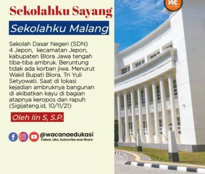 Read Morewacana-edukasi.com-- Sekolah Dasar Negeri (SDN) 4 Jepon, kecamatan Jepon, kabupaten Blora Jawa tengah tiba-tiba ambruk. Beruntung tidak ada korban jiw