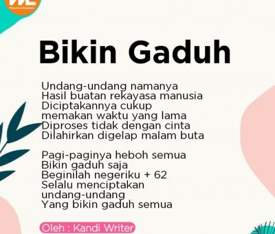 Read MoreOleh: Kandi WriterUndang-undang namanya Hasil buatan rekayasa manusia Diciptakannya cukup memakan waktu yang lama Diproses tidak dengan cinta