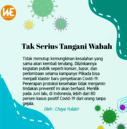 Hal ini menunjukkan ketidakseriusan pemerintah dalam menangani wabah. Tarik ulur berbagai aturan membuat rakyat bingung dan berimbas diabaikannya berbagai protokol kesehatan. Bukan tidak mungkin akan muncul klaster baru penyebaran Covid-19 dari acara Pilkada.