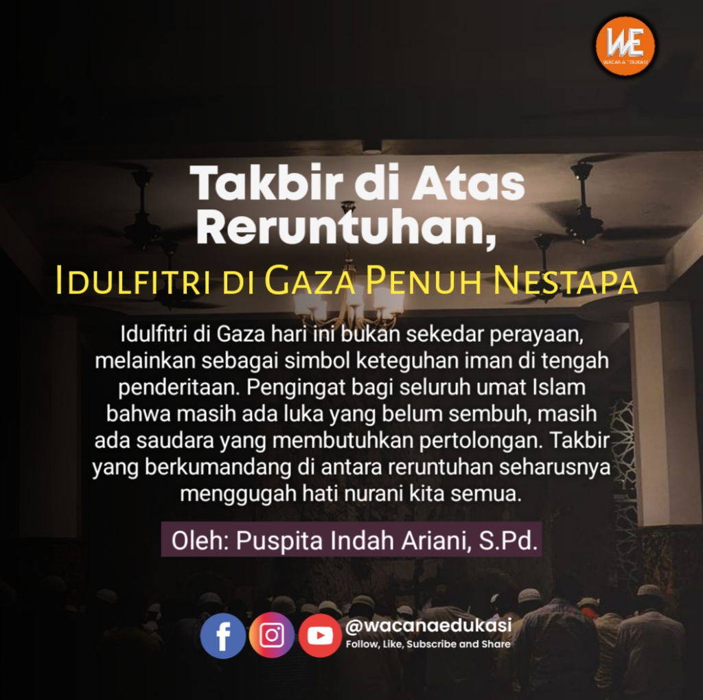 Idul Fitri di Gaza hari ini bukan sekedar perayaan, melainkan sebagai simbol keteguhan iman di tengah penderitaan. Pengingat bagi seluruh umat Islam bahwa masih ada luka yang belum sembuh, masih ada saudara yang membutuhkan pertolongan. Takbir yang berkumandang di antara reruntuhan seharusnya menggugah hati nurani kita semua.