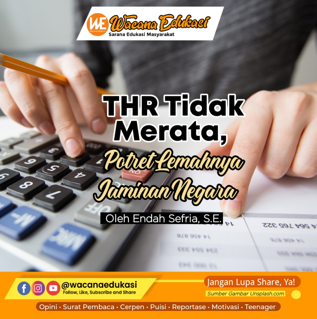 wacana-edukasi.com, OPINI--Sebentar lagi umat Islam akan menyambut hari kemenangan yakni hari raya Idul Fitri dengan suka cita setelah berpuasa satu bulan penuh, yang membuat lebih bahagia adalah adanya THR yang setiap tahunnya keluar untuk merayakan hari raya. Tunjangan hari raya atau kita sebut THR adalah pendapatan nonupah yang diberikan kepada pekerja atau keluarganya menjelang hari raya keagamaan. Banyak keluarga khususnya muslim yang mengharapkan THRnya keluar. Karena mungkin setahun sekali mereka akan bersuka cita dengan membeli pakaian baru, memasak hidangan lebaran, untuk ongkos mudik, membeli bingkisan untuk keluarga dan sebagainya.