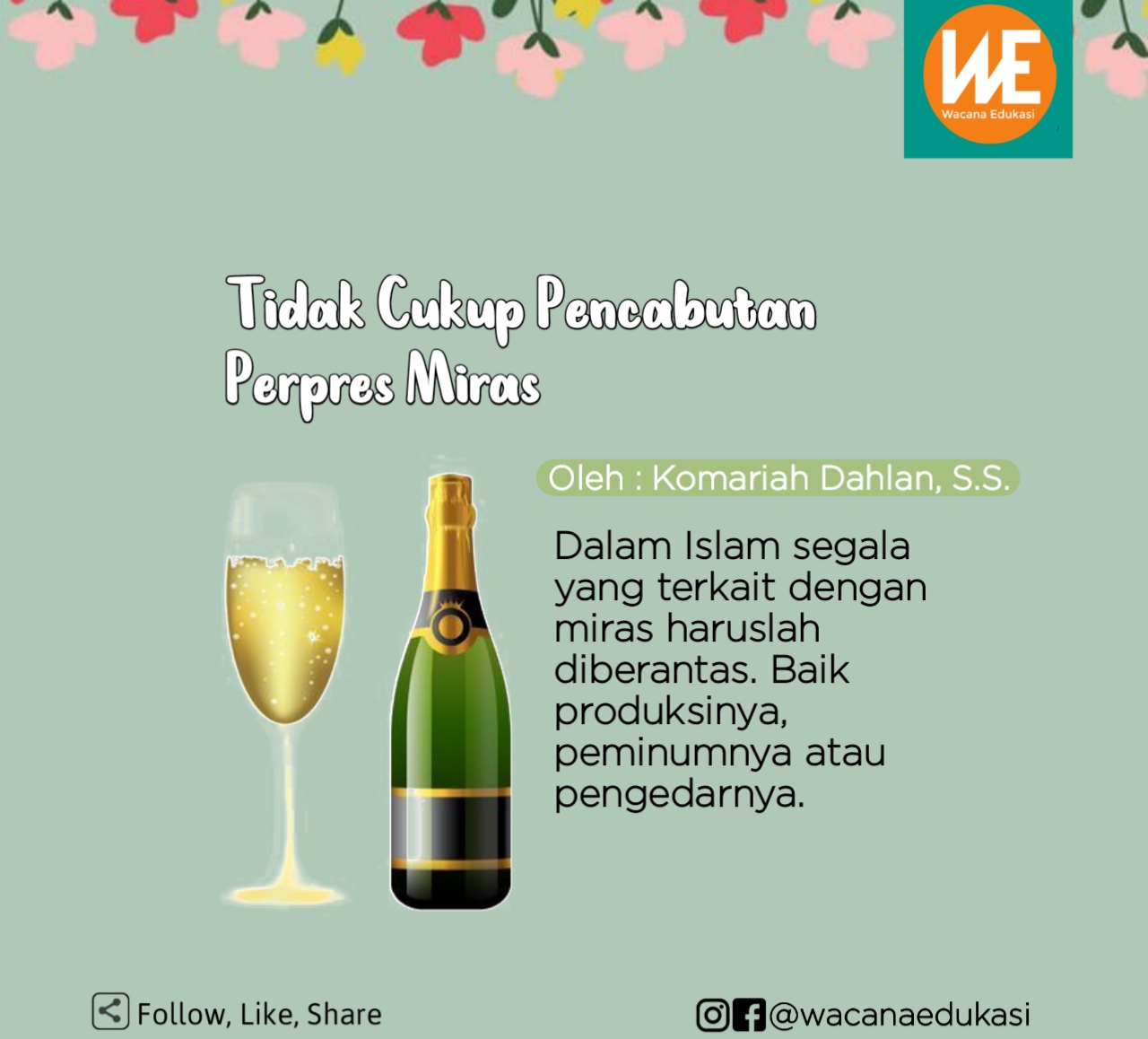 Jadi sebenarnya pencabutan kembali Perpres nomor 10 tahun 2021 tentang investasi miras tidak akan menghilangkan keberadaan miras di negeri ini. Karena sejatinya produksi miras yang telah berjalan akan tetap berlanjut yang berarti kerusakan dan kriminalitas akibat miras masih akan terus terjadi.