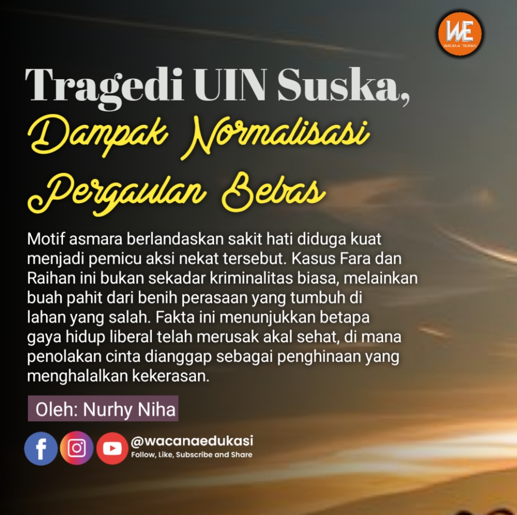 Motif asmara berlandaskan sakit hati diduga kuat menjadi pemicu aksi nekat tersebut. Kasus Fara dan Raihan ini bukan sekadar kriminalitas biasa, melainkan buah pahit dari benih perasaan yang tumbuh di lahan yang salah. Fakta ini menunjukkan betapa gaya hidup liberal telah merusak akal sehat, di mana penolakan cinta dianggap sebagai penghinaan yang menghalalkan kekerasan. Inilah potret nyata betapa normalisasi hubungan lawan jenis di luar batas syariat hanya akan berujung pada bencana.