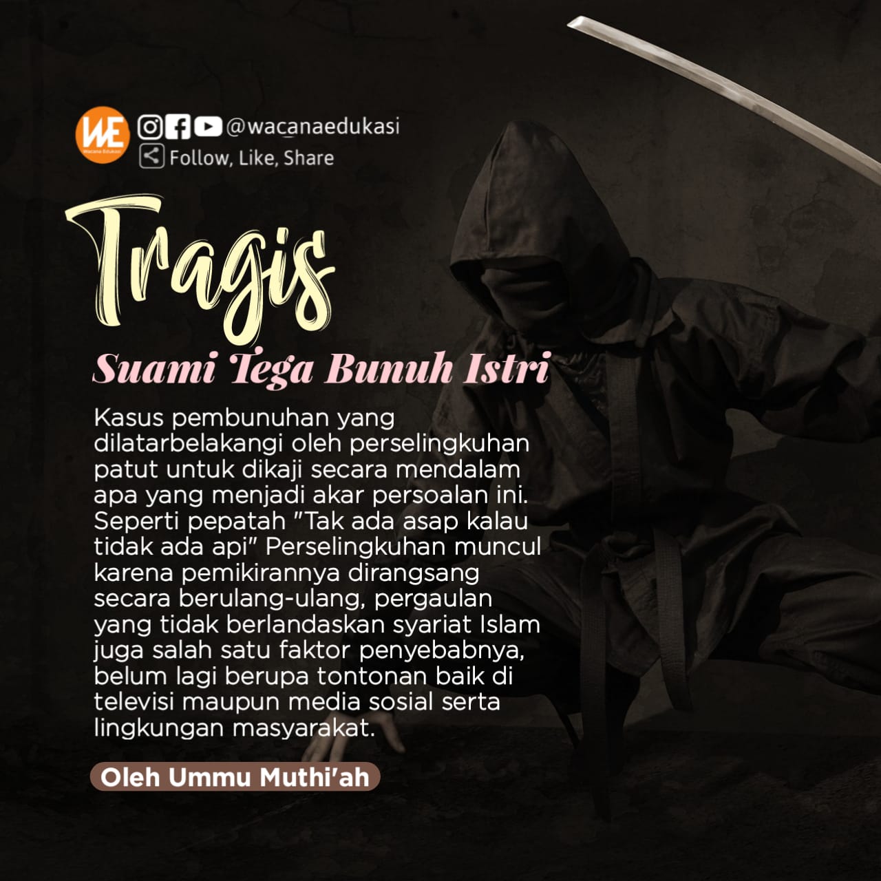 Kasus pembunuhan yang dilatarbelakangi oleh perselingkuhan patut untuk dikaji secara mendalam apa yang menjadi akar persoalan ini. Seperti pepatah “Tak ada asap kalau tidak ada api” Perselingkuhan muncul karena pemikirannya dirangsang secara berulang-ulang, pergaulan yang tidak berlandaskan syariat Islam juga salah satu faktor penyebabnya, belum lagi berupa tontonan baik di televisi maupun media sosial serta lingkungan masyarakat. Sebagai contoh drakor tentang pelakor dan pebinor, pacaran, media sosi yang tidak membatasi hubungan dengan siapa saja bahkan lintas negara. Intinya happy untuk kesenangan dunia semata.