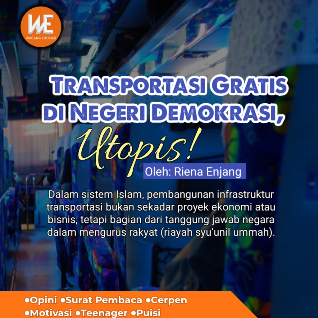 Terlebih, berharap transportasi gratis di sistem demokrasi kapitalisme hanyalah utopis. Dengan demikian, untuk solusi jangka panjang membutuhkan peran aktif negara dalam menyediakan transportasi yang murah, aman, dan berkualitas bagi seluruh rakyat, bukan sekadar kebijakan populis yang bersifat sementara, dan itu hanya akan terwujud dalam sistem pemerintahan Islam.