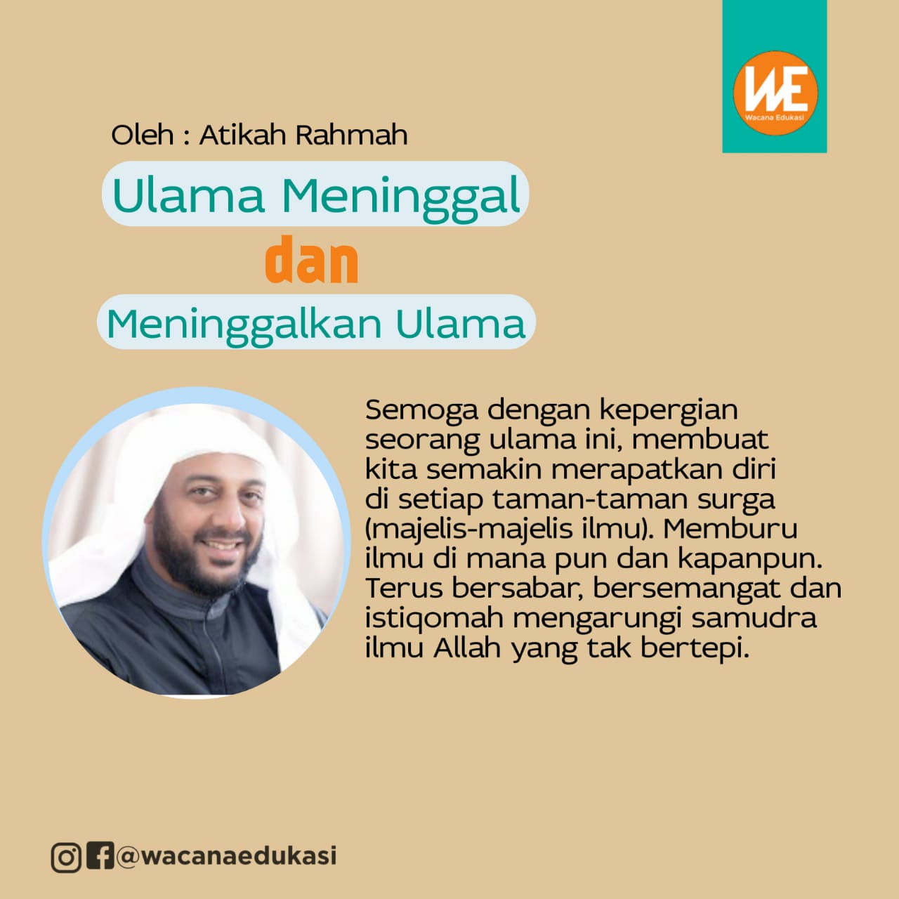 Menangislah wahai kaum muslim, sungguh Allah sedang mencabut ilmu dari tengah-tengah kita dengan wafatnya ulama. Sebagaimana sabda Nabi saw.