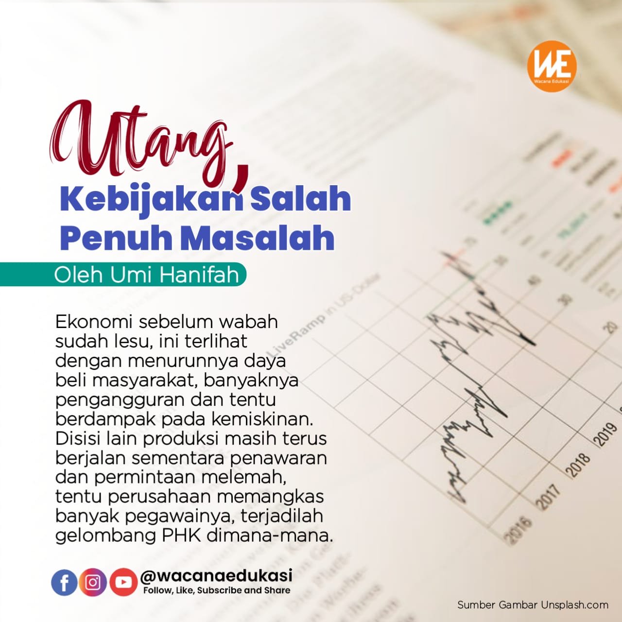 Sejatinya utang adalah kesalahan fatal dari kebijakan ala sistem kapitalisme. Utang adalah penjajahan gaya baru negara lain atas negara pengutang. Hal ini terbukti, SDA yang melimpah ternyata banyak diambil alih oleh swasta baik lokal maupun asing.