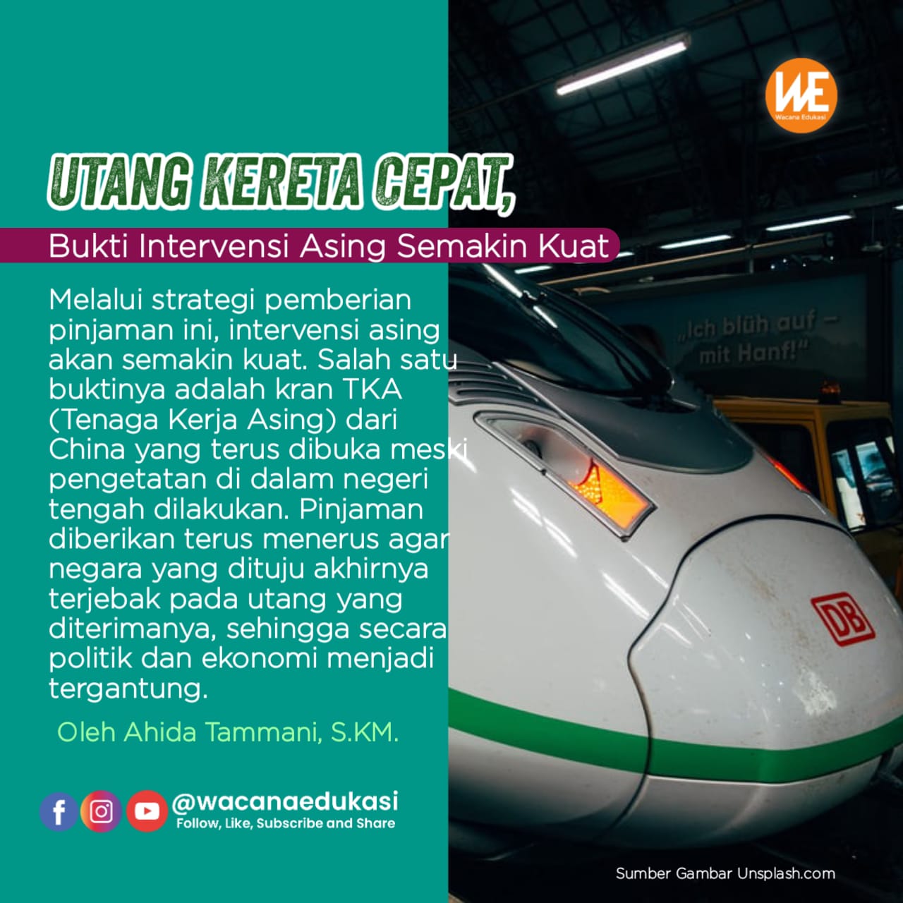 Melalui strategi pemberian pinjaman ini, intervensi asing akan semakin kuat. Salah satu buktinya adalah kran TKA (Tenaga Kerja Asing) dari China yang terus dibuka meski pengetatan di dalam negeri tengah dilakukan. Pinjaman diberikan terus menerus agar negara yang dituju akhirnya terjebak pada hutang yang diterimanya, sehingga secara politik dan ekonomi menjadi tergantung.