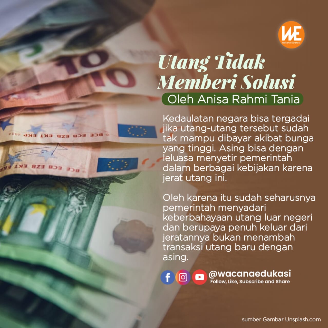 Disinilah kita harus menyadari bahwa sistem ekonomi yang dianut oleh negara kita tidak mampu menopang penyelesaian pandemi. Pemerintah seakan bersembunyi di balik kondisi pandemi untuk kembali berutang. Nyatanya, sejak dulu utang selalu menjadi jalan keluar dari ketiadaan biaya. Padahal ULN yang telah menjadi tradisi ini jelas membahayakan kedaulatan negara.