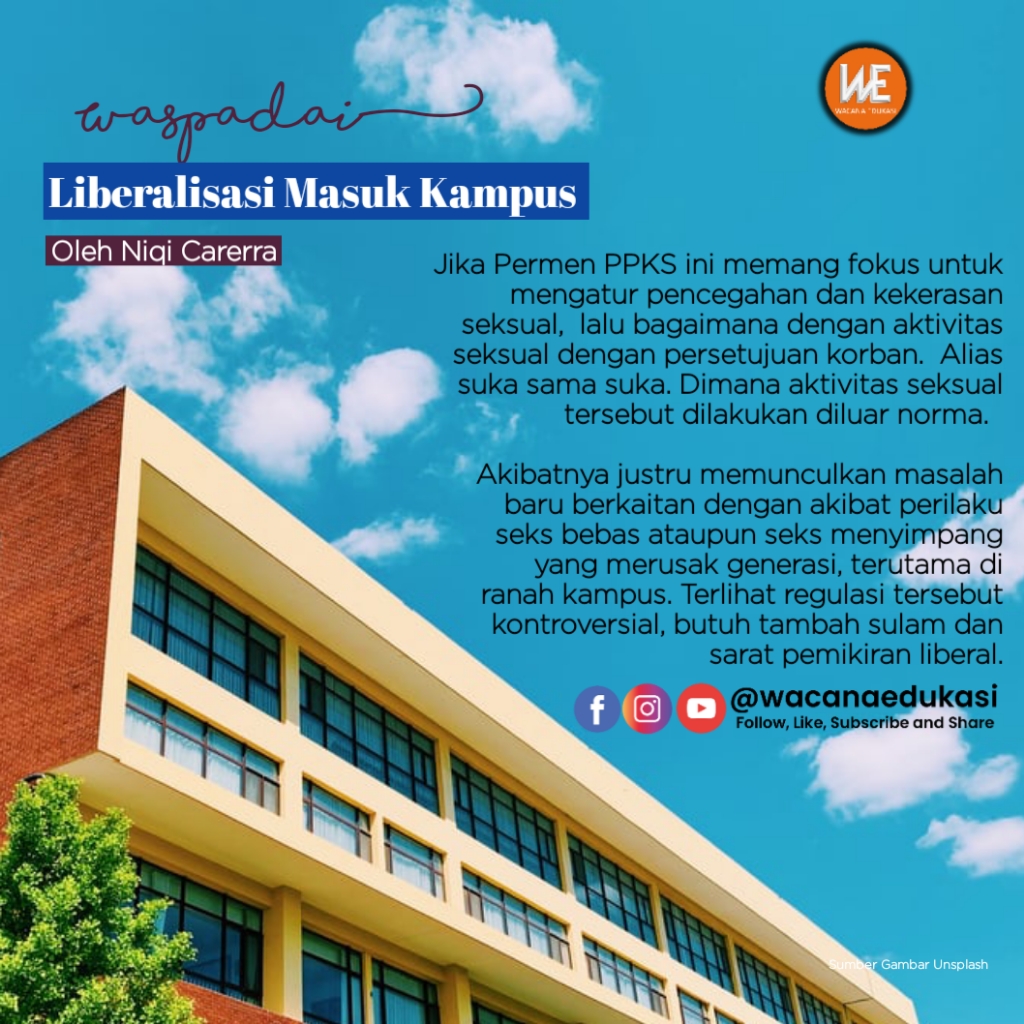 Dari sini akan terbaca tujuan pemberlakuan regulasi ini bukanlah memberantas kekeraan seksual di kampus, namun lebih dominan menjadi alat untuk mengokohkan paradigma kesetraaan gender dan liberal di kampus.