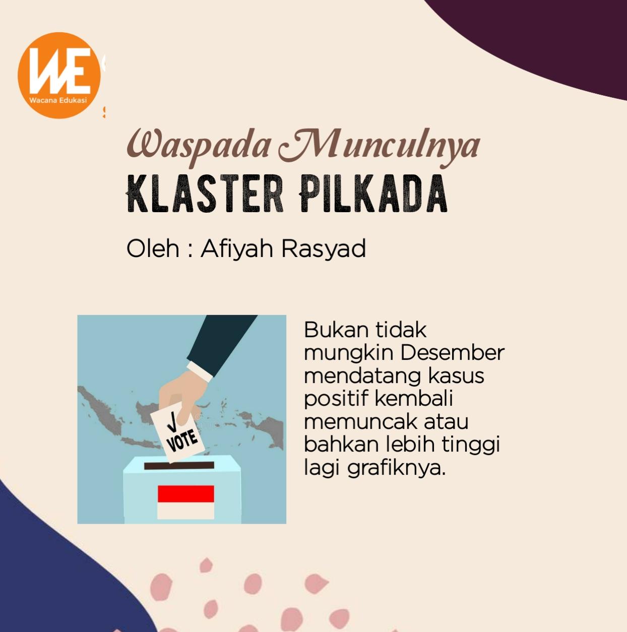 Adanya walimah politik di kala pandemi membuka peluang munculnya klaster pilkada. Akses berkerumun sangat besar, sementara penegakan protokol kesehatan lemah. Mata rantai virus corona semakin menyebar ke mana-mana.