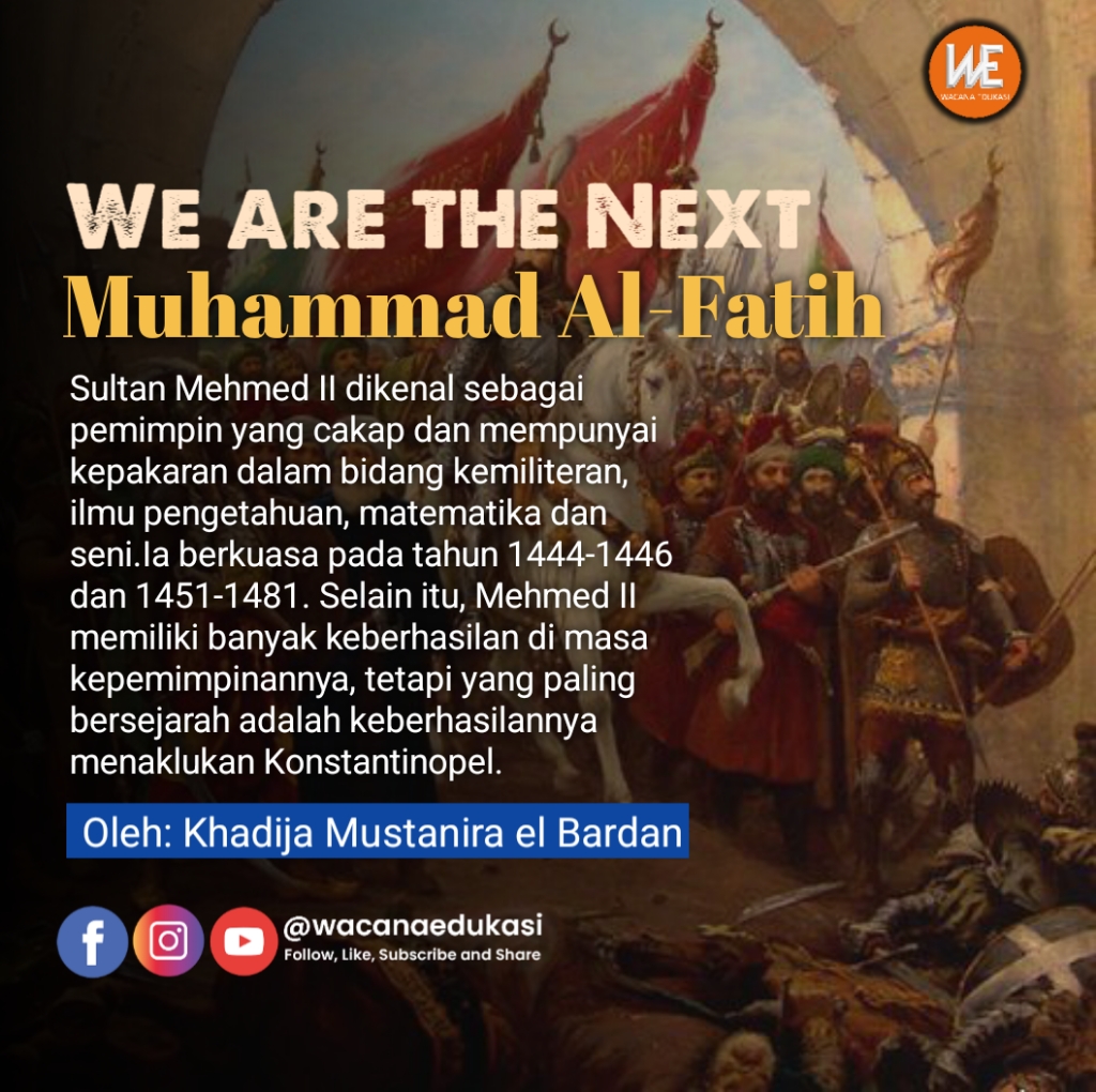 Semoga cerpen ini bisa menjadi motivasi untuk kita semua. Teruslah berjuang menjadi the next Muhammad Al Fatih. Ingat kata Sultan Mehmed; “jangan jadikan dunia segalanya,maka kau akan jadi pemberani”. Semangat terus, jangan putus asa, ya!!