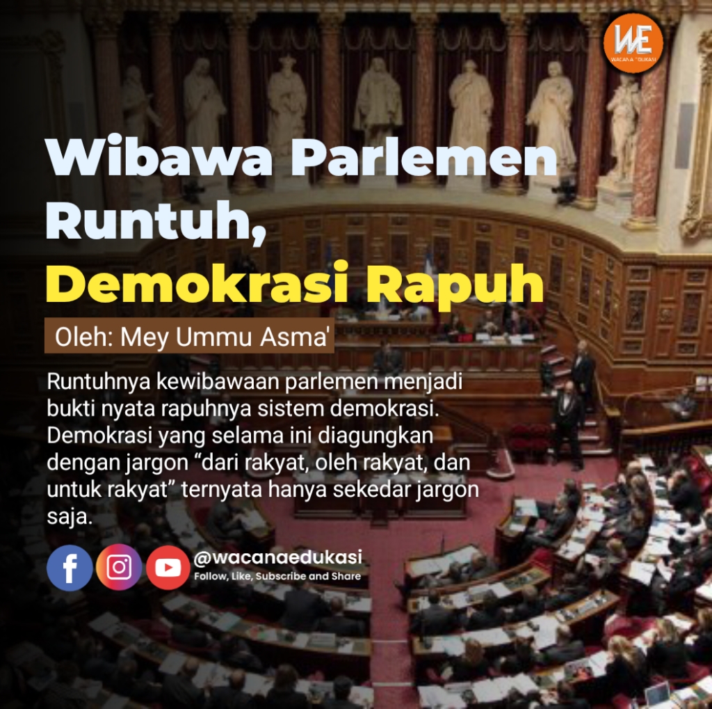 Runtuhnya kewibawaan parlemen menjadi bukti nyata rapuhnya sistem demokrasi. Demokrasi yang selama ini diagungkan dengan jargon “dari rakyat, oleh rakyat, dan untuk rakyat” ternyata hanya sekedar jargon saja. Korupsi yang merajalela, permainan uang dalam penyusunan undang-undang, serta kebijakan yang lebih menguntungkan kapitalis daripada rakyat banyak, menjadi bukti bobroknya sistem ini.