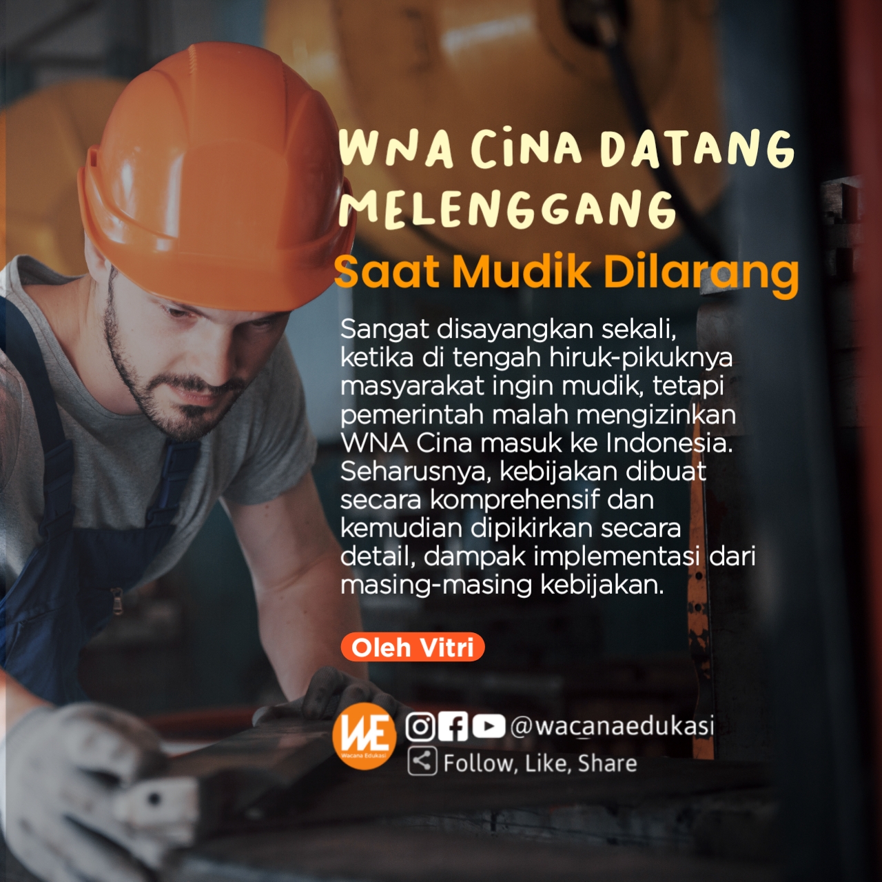 Sangat disayangkan sekali, ketika di tengah hiruk-pikuknya masyarakat ingin mudik, tetapi pemerintah malah mengizinkan WNA Cina masuk ke Indonesia. Seharusnya, kebijakan dibuat secara komprehensif dan kemudian dipikirkan secara detail, dampak implementasi dari masing-masing kebijakan.