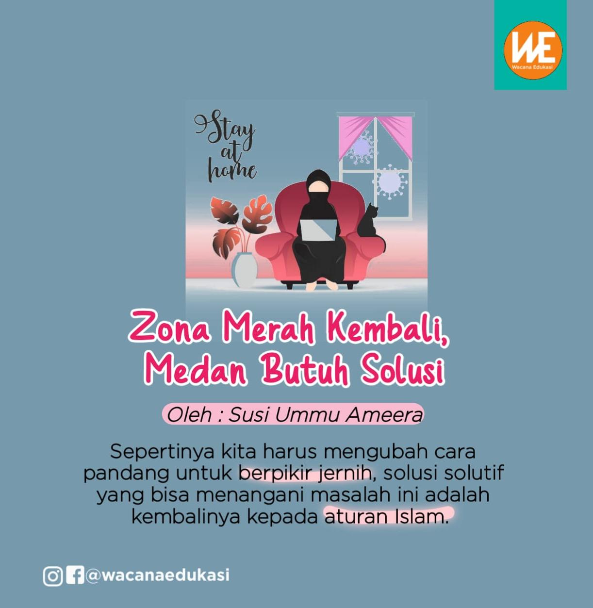 Sepertinya kita harus mengubah cara pandang untuk berpikir jernih, solusi solutif yang bisa menangani masalah ini adalah kembalinya kepada aturan Islam. Aturan yang dihasilkan oleh akal manusia yang berasal dari sistem kapitalisme yaitu paham sekulerisme tidak mampu menyelesaikan masalah yang ini. Kembalilah pada Islam, yang sudah pernah mencontohkan bagaimana menangani pandemi, salah satunya memisahkan yang sehat dengan yang sakit, dan melakukan (lockdown) secara total.